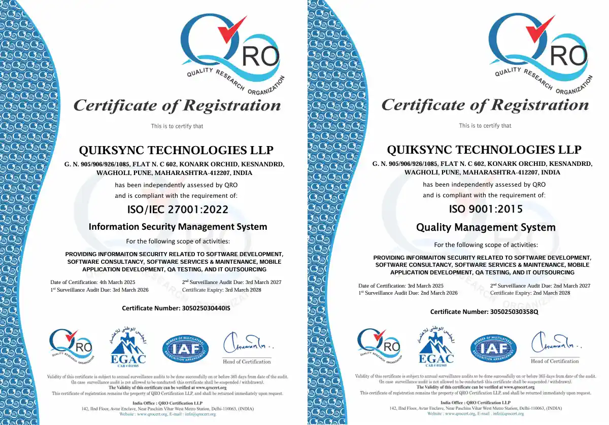 QuikSync Technologies is your strategic partner in innovation, not merely a supplier of services. We are committed to assisting companies in expanding and thriving in the digital era. Our areas of expertise include cloud computing, software outsourcing, artificial intelligence, and web and mobile development. Our goal is to increase user engagement, boost operational efficiency, and promote sustainable growth by providing specialized solutions that successfully translate your business goals into action.